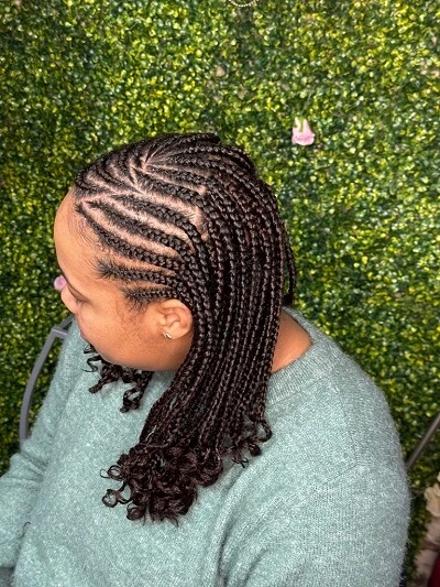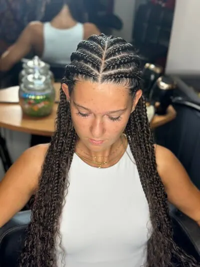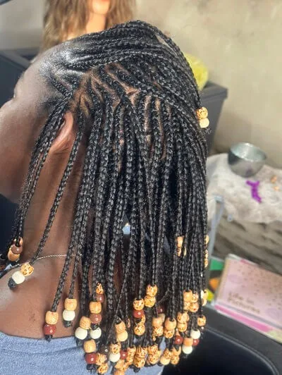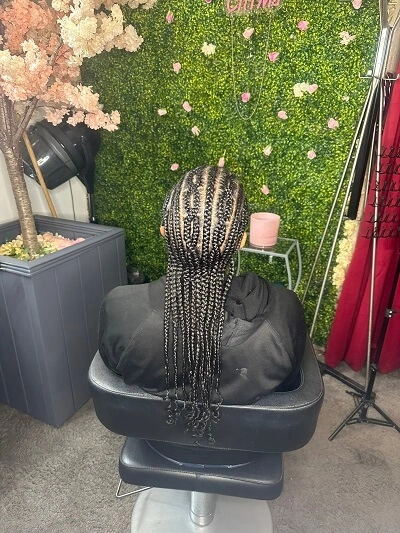 2. Box Braids et Tresses Libres : Nos box braids et tresses libres sont réalisées avec soin pour allier confort et esthétique, offrant ainsi une coiffure durable et tendance.